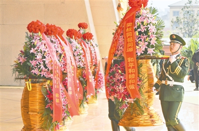 敬献花篮。铁凝、王光谦、楼阳生、王凯、张志军、程学源、郑平、阎京华,省委常委、郑州市委书记安伟,郑州市市长何雄,新郑市委书记马宏伟,新郑市市长杨晋先后走上拜祖台,向黄帝像敬献花篮。
