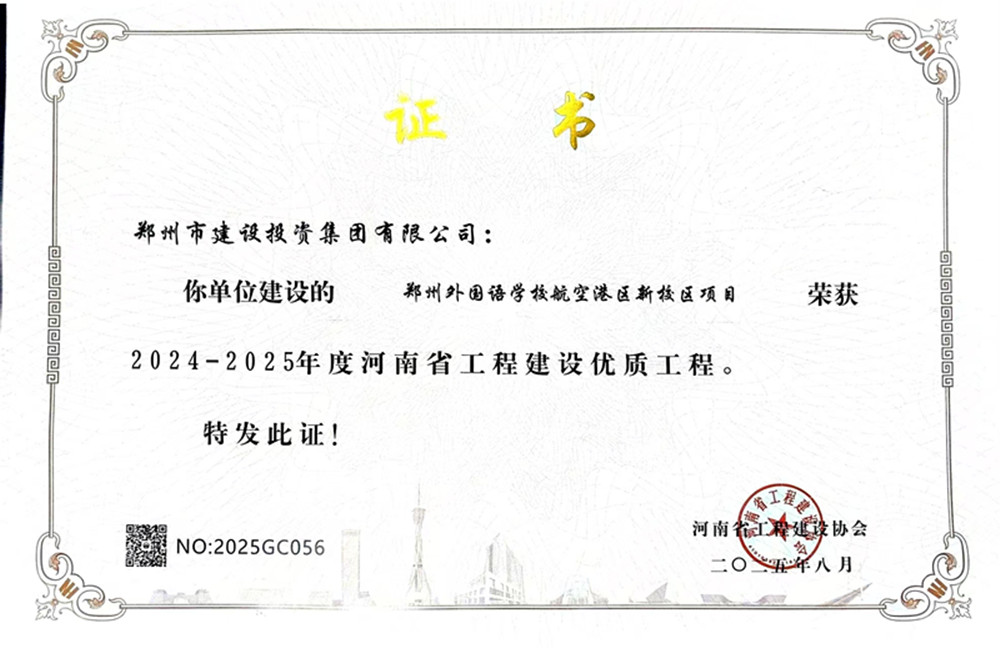 近日,由开云在线登录官网-开云(中国)代建的郑州外国语学校航空港区新校区项目荣获2024-2025年度河南省工程建设优质工程荣誉。