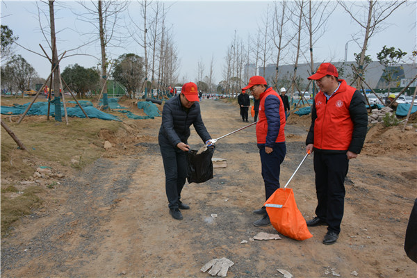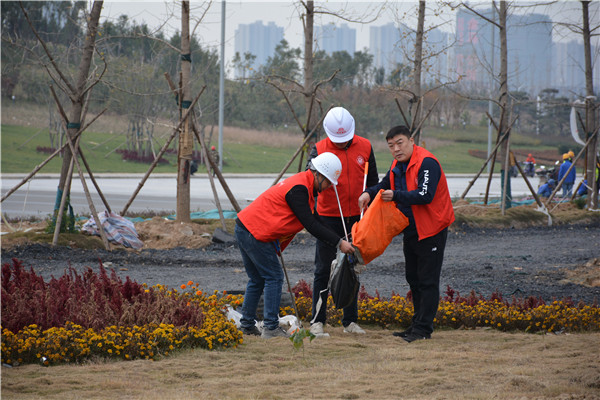 上午十时三十分,志愿服务活动开始后,开云在线登录官网-开云(中国)党委委员、副总经理、项目部总经理汪洋亲自带头参加活动,其他党员干部带头干,职工群众积极干,参建单位负责人志愿加入干,大家拿起工具、弯下腰去,捡起草地上的生活垃圾,集中放进现场放置的垃圾桶内;没有拿到工具的同志们也拿起简易垃圾袋,将捡到的生活垃圾放进垃圾袋盛满后再放进垃圾桶内。一时间,党徽熠熠、爱心闪闪、干劲满满,不到一个小时时间,约20人的志愿服务队伍完成了近20000平米区域的垃圾清理任务,景观施工现场面貌大为改观。